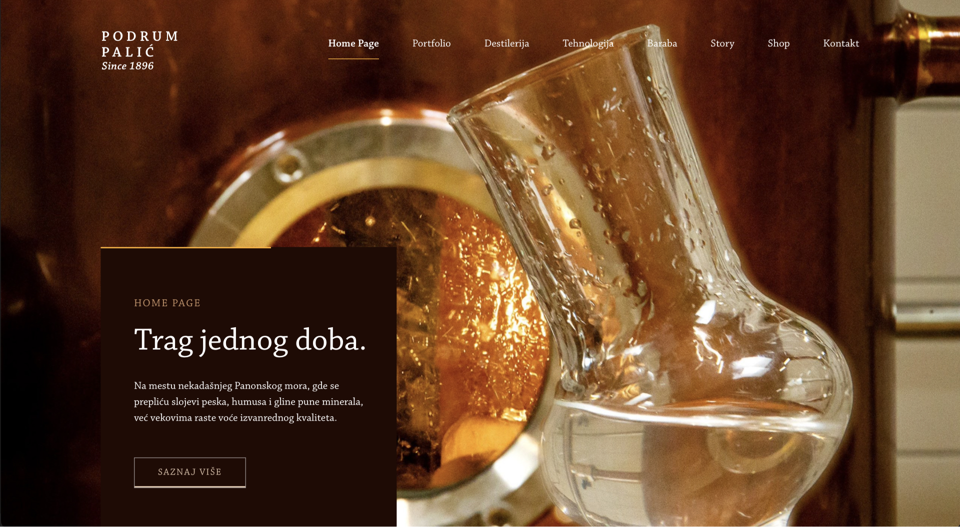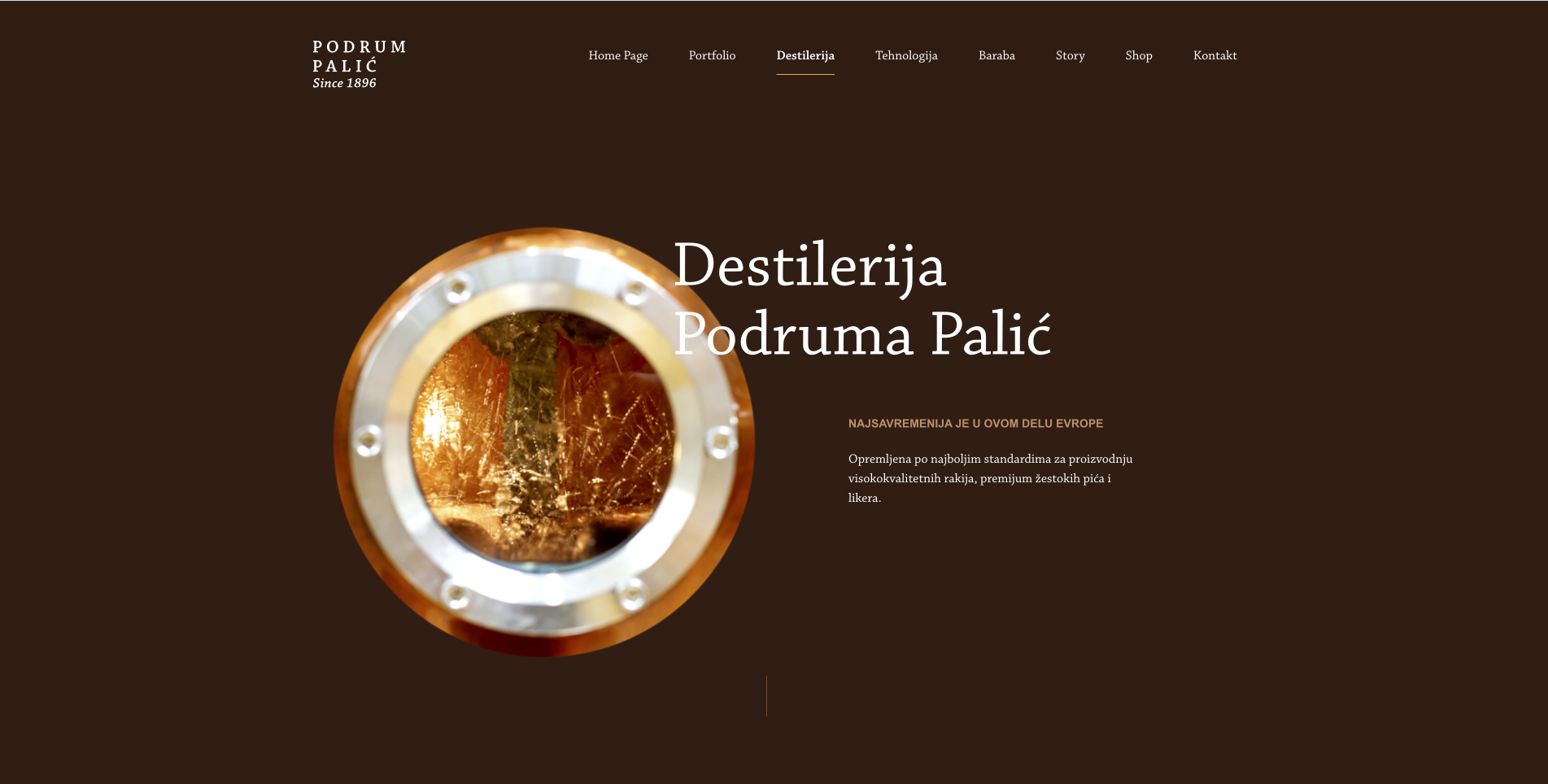 First, we designed, provided content, and developed www.podrumpalic.rs website, an essential e-commerce website telling a story about distillery, technology, philosophy, and products. www.podrumpalic.rs